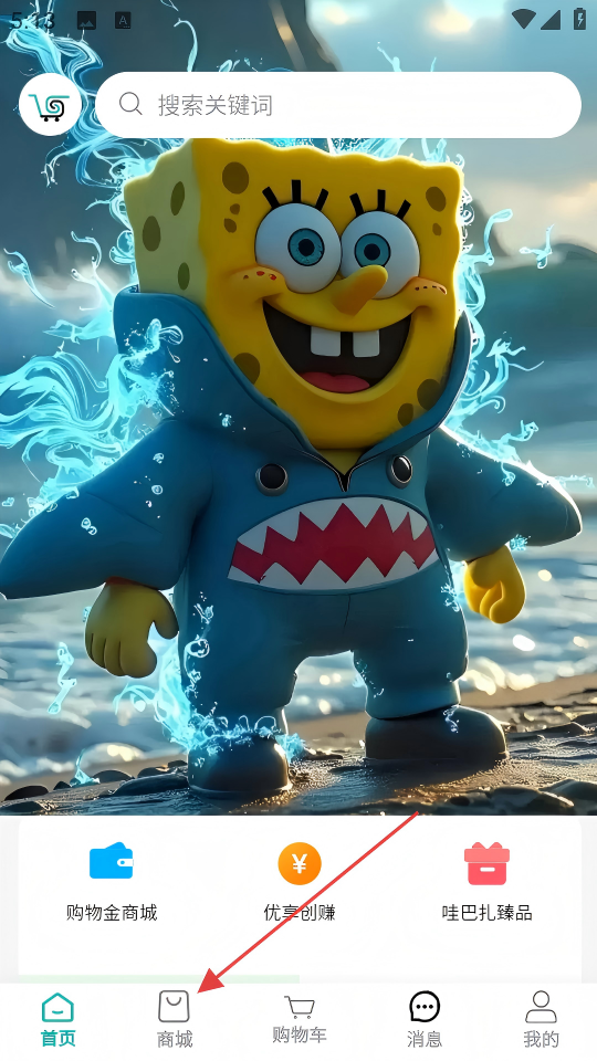 1、进入首页后,点击底部的【商城】选项,进入商城页面。