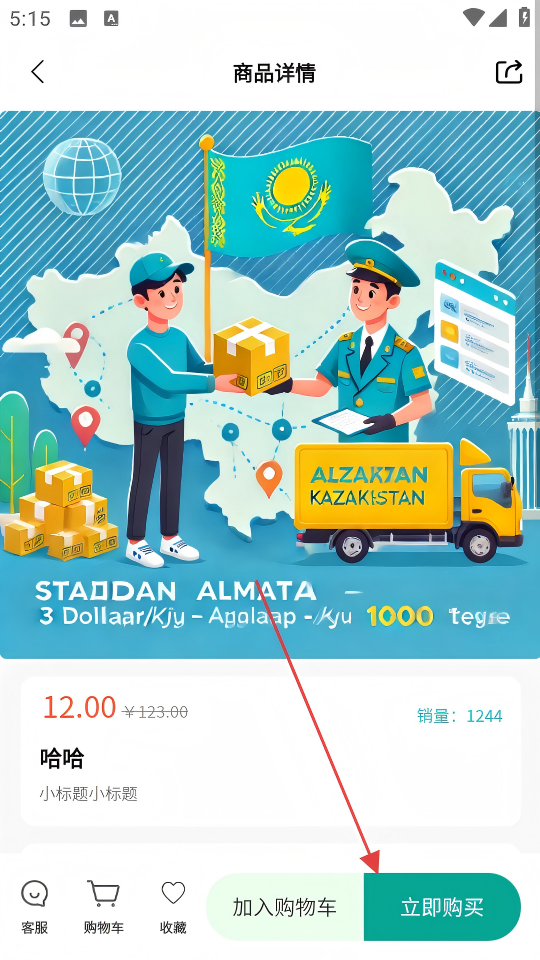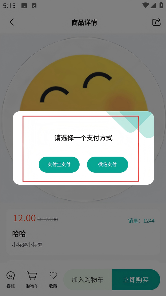 3、在商品详情页中,点击【立即购买】按钮,触发支付方式选择弹窗。