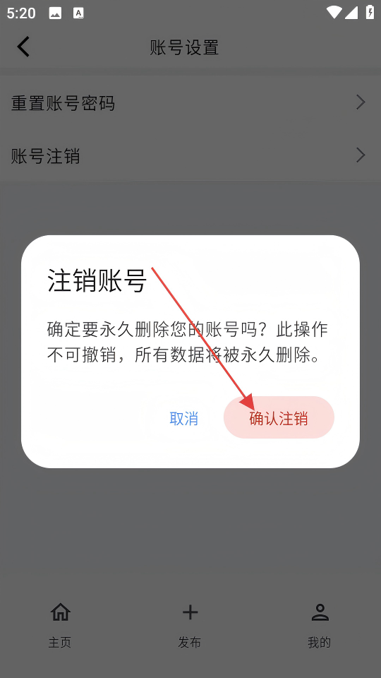 4、在“注销账号”确认框中,点击【确认注销】按钮,即可永久删除账号。