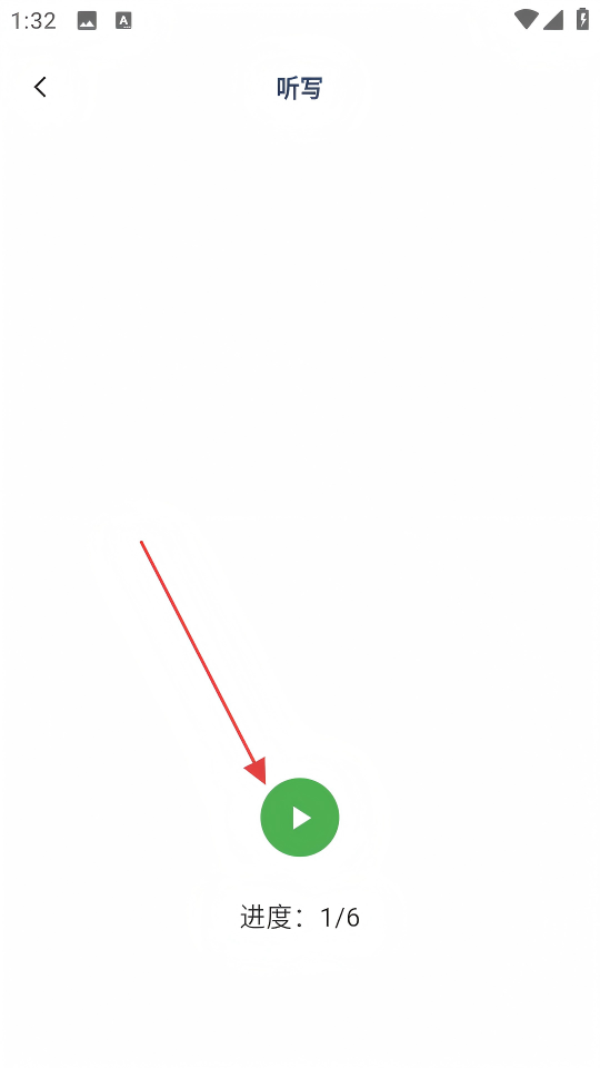 4、在听写页面,点击绿色播放按钮,即可按照进度开始听写汉字。