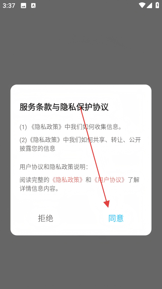 1、阅读【服务条款与隐私保护协议】后,点击【同意】,进入应用。