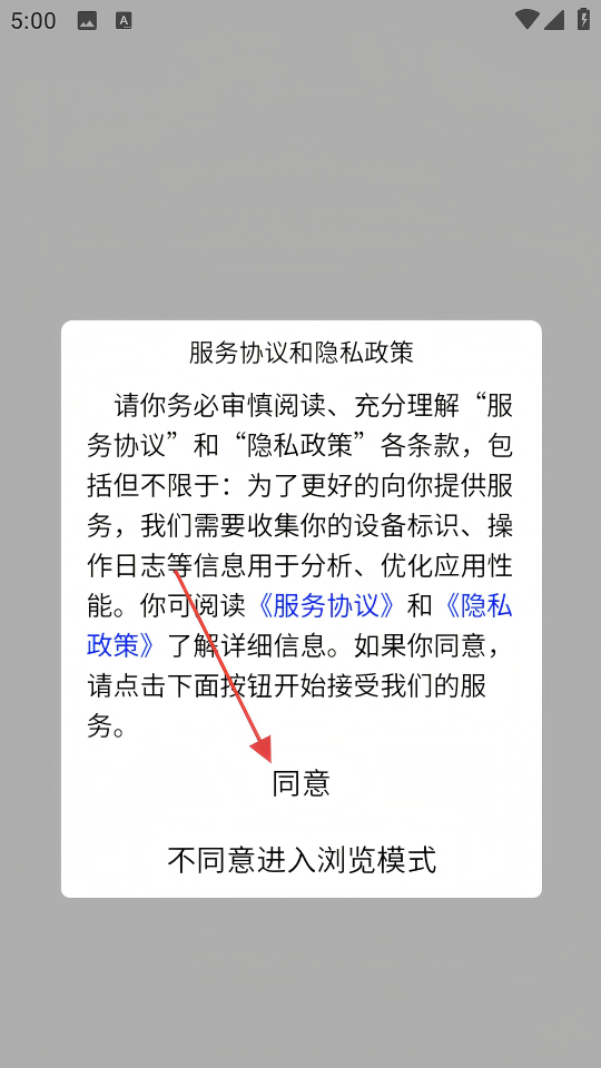 1、阅读【服务协议】和【隐私政策】后,点击【同意】,进入冀时学页面。