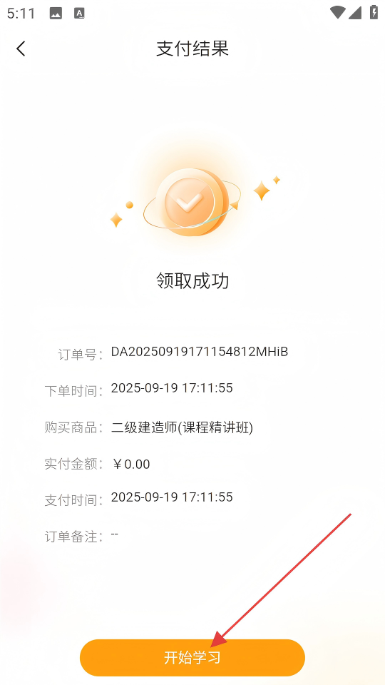 4、领取成功后,点击【开始学习】,即可开始学习二级建造师课程。