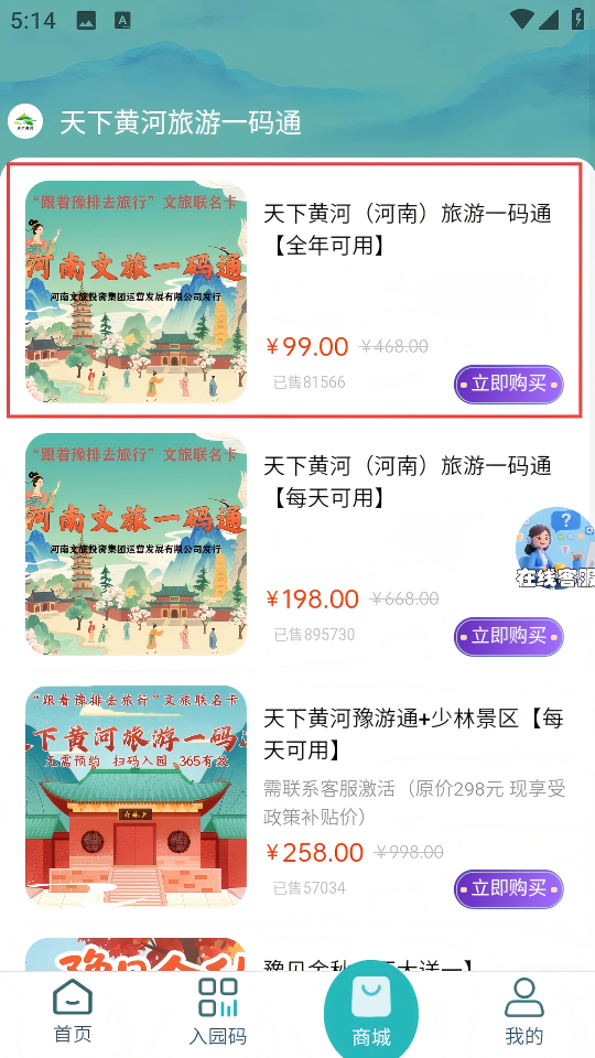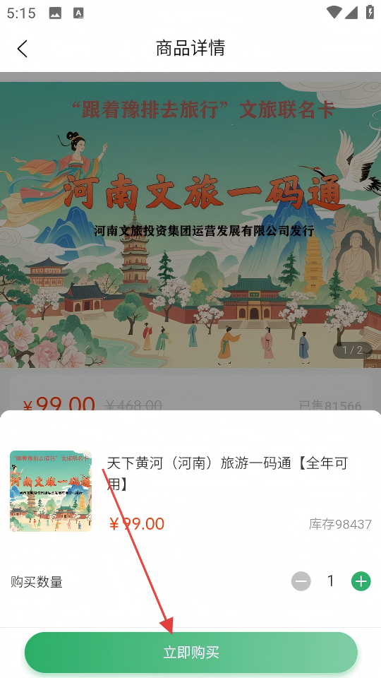 4、确认购买数量后,点击弹窗里的【立即购买】,即可购买该旅游一码通。