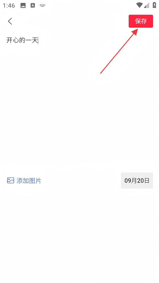3、在笔记编辑页面,输入笔记内容,确认内容无误后,点击右上角【保存】。