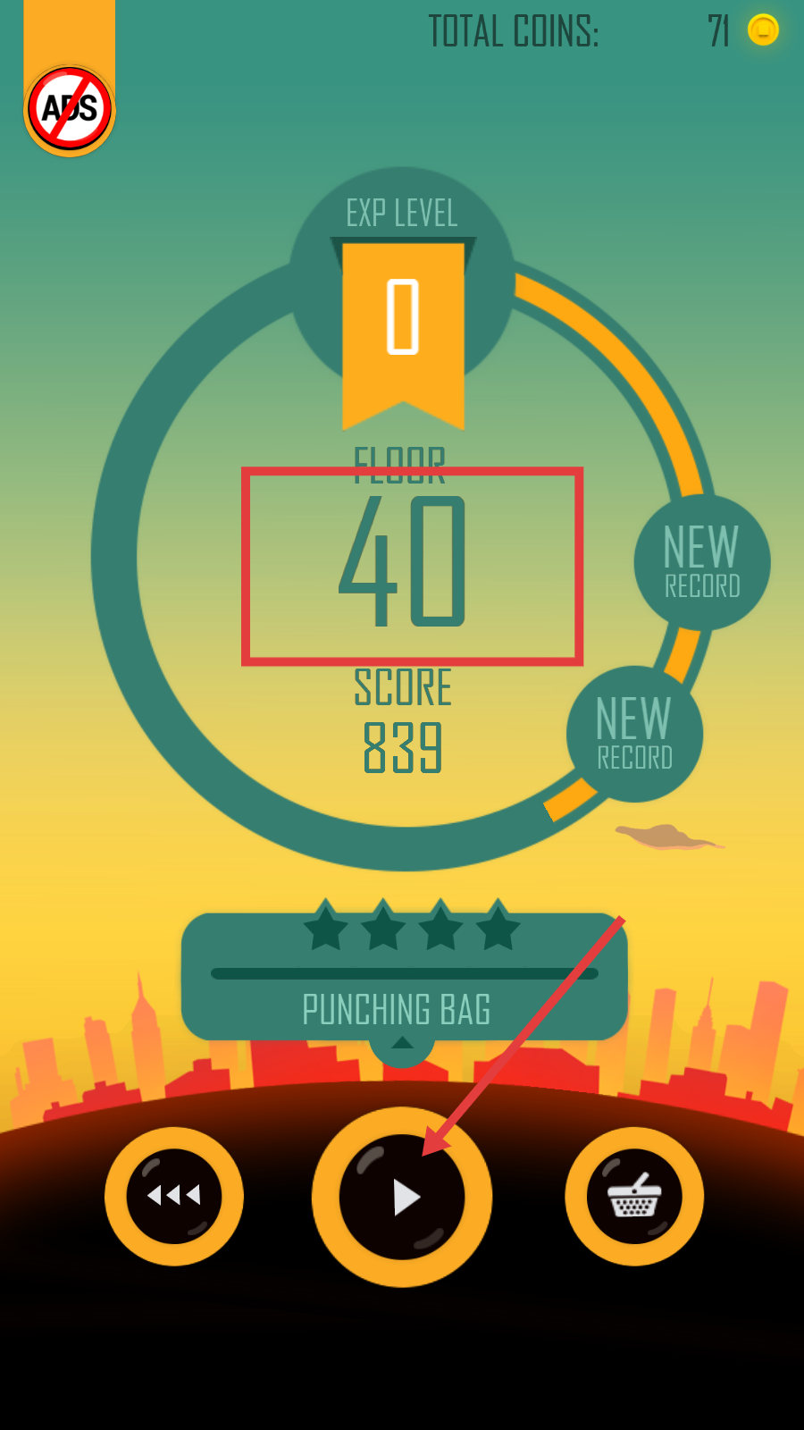 4、游戏结束后,可以看到自己的分数,如果不满意,点击播放键可重新挑战。