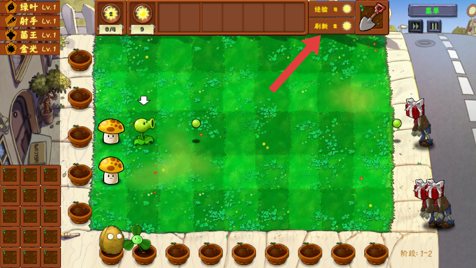 3、当植物阵容不足时,点击右上角的刷新按钮,更换可用植物,补充战斗力量。