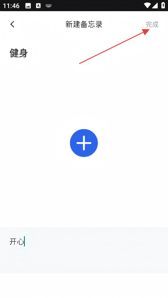 3、在新建备忘录页面输入内容后,点击右上角【完成】按钮。