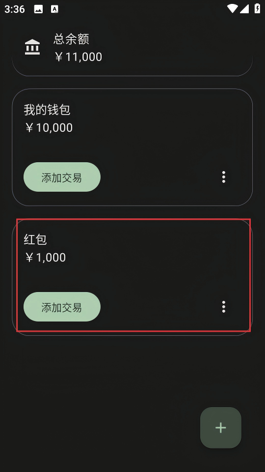 4、即可成功添加名为“红包”、初始金额为1000元的钱包。