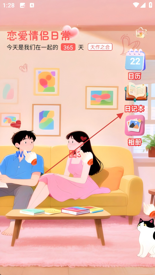 2、在APP主界面,点击【日记本】图标,进入情侣日记页面。