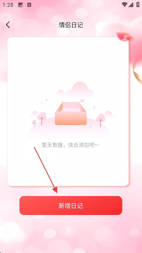 3、在情侣日记页面,点击【新增日记】按钮,进入新增日记页面。