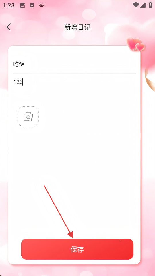 4、在新增日记页面输入内容后,点击【保存】按钮,完成日记新增。