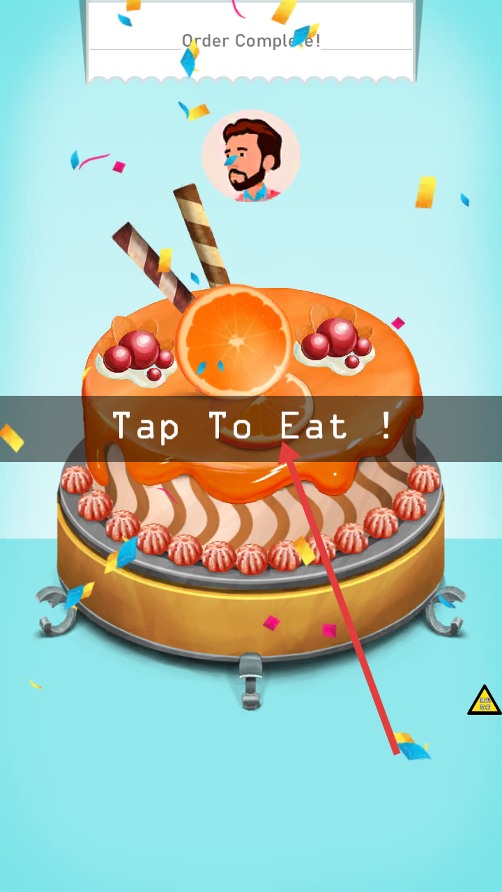 4、完成所有装饰后,订单显示完成,屏幕出现【Tap-To-Eat!】,点击可享用蛋糕。