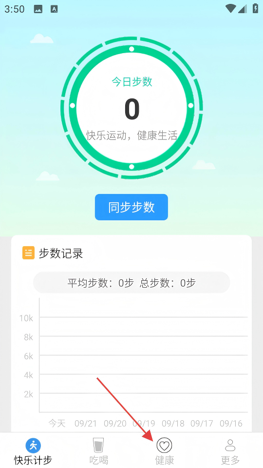 2、在APP首页,点击底部【健康】选项,进入“健康”页面。