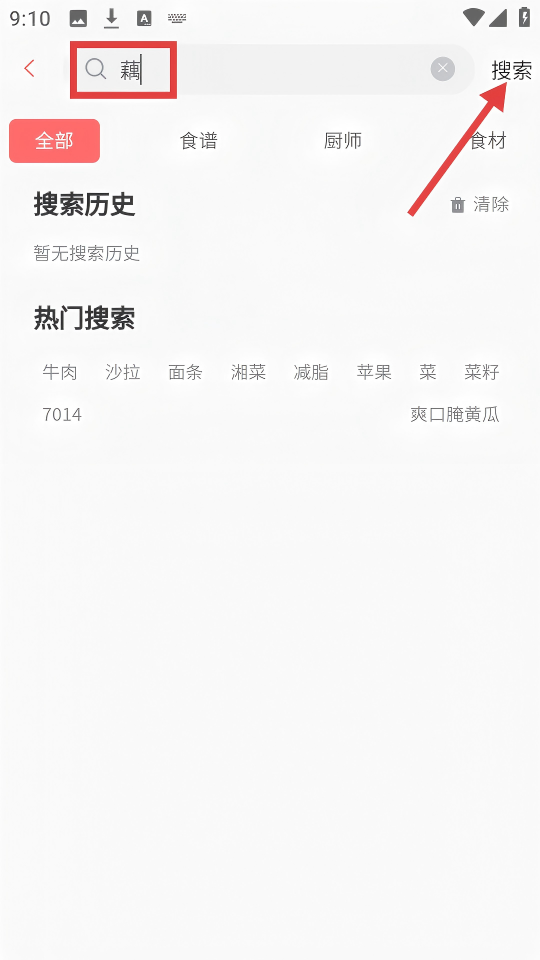 2、在搜索框输入想制作的食材,点击右侧【搜索】按钮进行搜索。