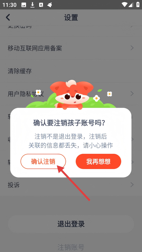 4、在确认注销弹窗中,点击【确认注销】按钮,完成账号注销操作。