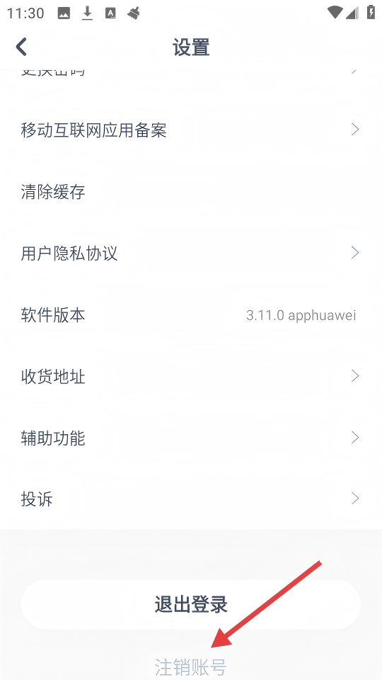 3、在设置页面,点击【注销账号】选项,弹出确认注销弹窗。