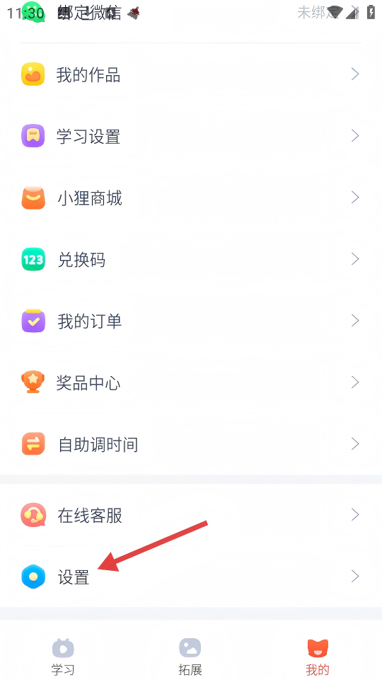 2、在我的页面,点击【设置】选项,进入设置页面。