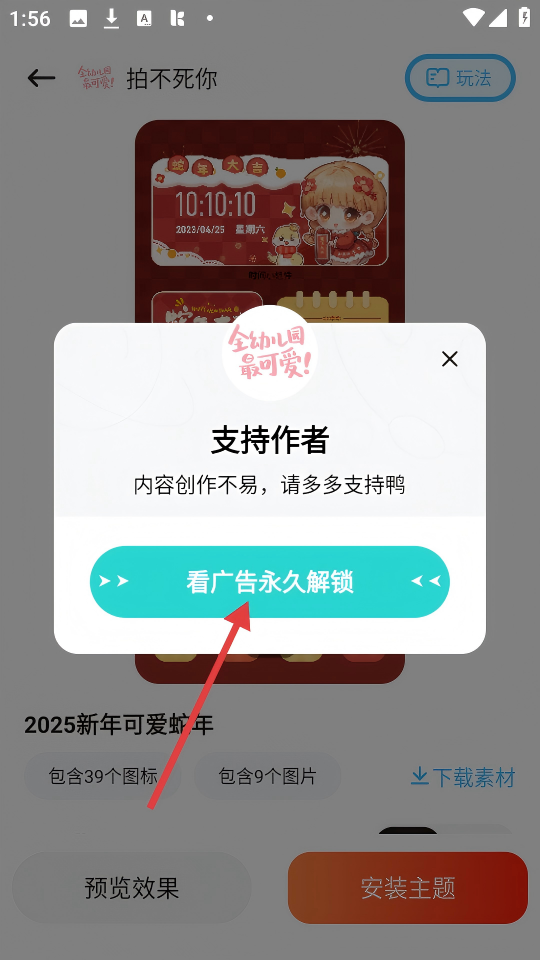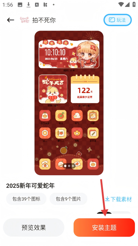 2、在【2025新年可爱蛇年】主题详情页,点击【安装主题】按钮。