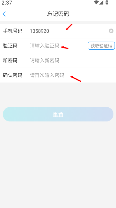 3、输入绑定的手机号码、验证码及新密码,确认后即可完成密码重置,重新登录系统继续使用。