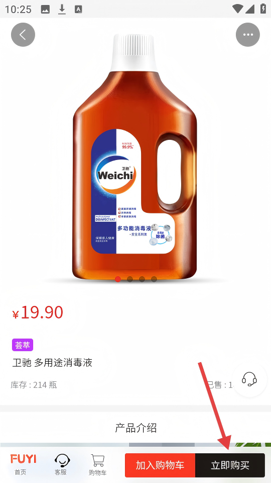 3、在卫驰多用途消毒液商品页,点击【立即购买】按钮可购买该商品。