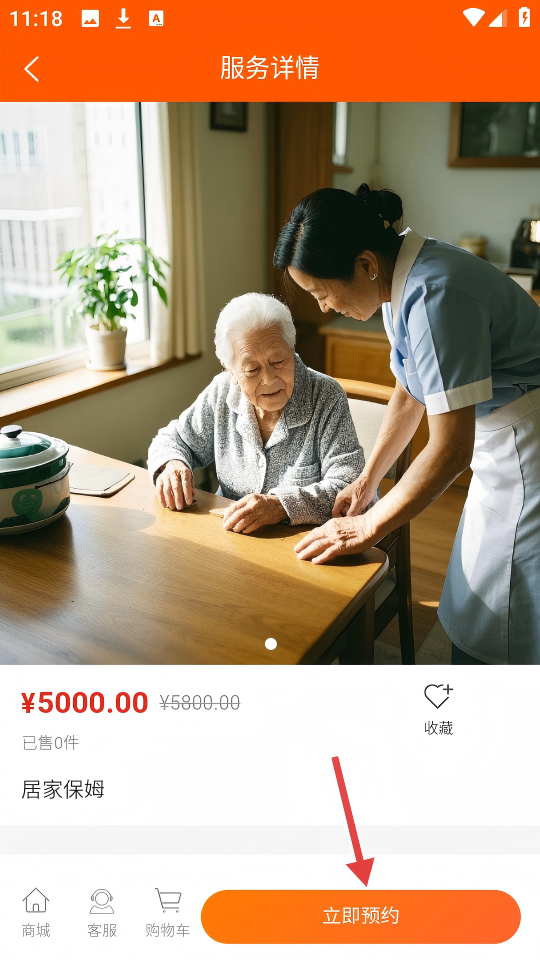 3、在【居家保姆】的服务详情页,点击【立即预约】按钮。