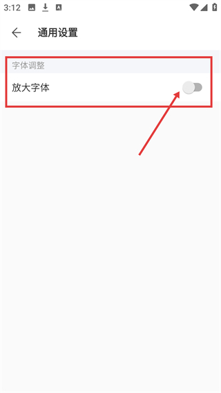 4、进入【通用设置】页面,找到【放大字体】开关选项,可通过开启该开关来调整字体显示大小。