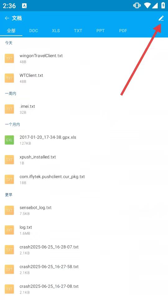 3、在文档列表页面,点击右上角的编辑图标,进入文档选择状态。