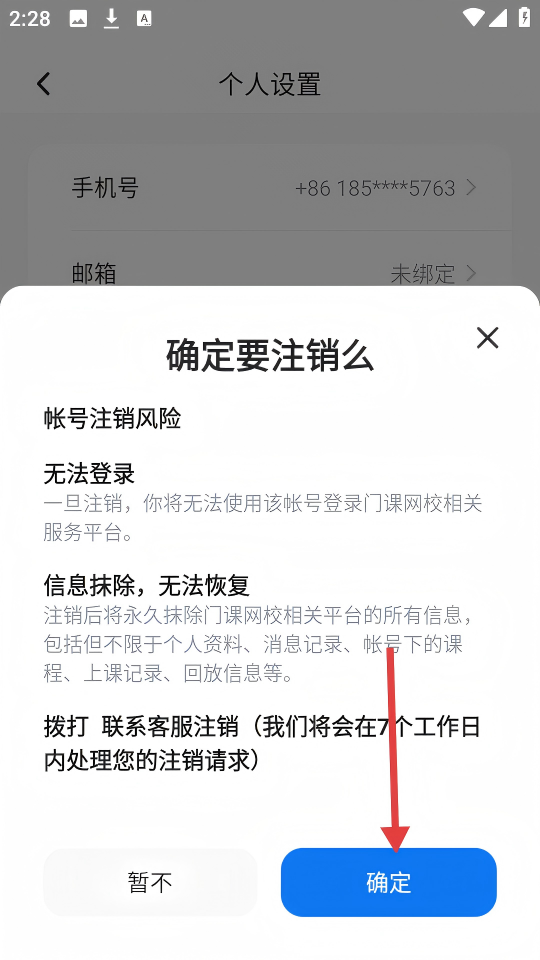 4、在【确定要注销么】弹窗中,点击【确定】按钮。