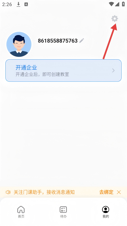 2、在【我的】页面,点击右上角的设置图标进入个人设置页面。