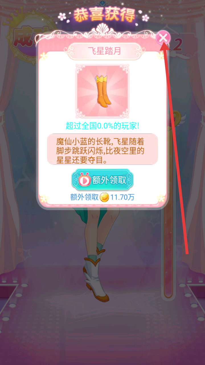 4、成功通关后,会弹出【恭喜获得-飞星踏月】的奖励提示,也可点击【额外领取】获取更多金币。