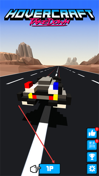 1、点击【1P】进入单人游戏模式,开启像素风格的警车追击冒险。