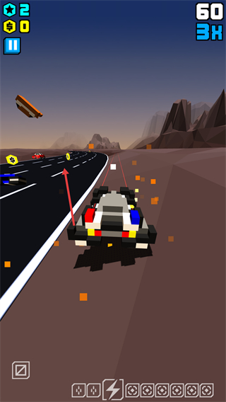 2、在沙漠公路上,操控警车追击犯罪车辆,注意躲避其他车辆和障碍物,保持追击节奏。