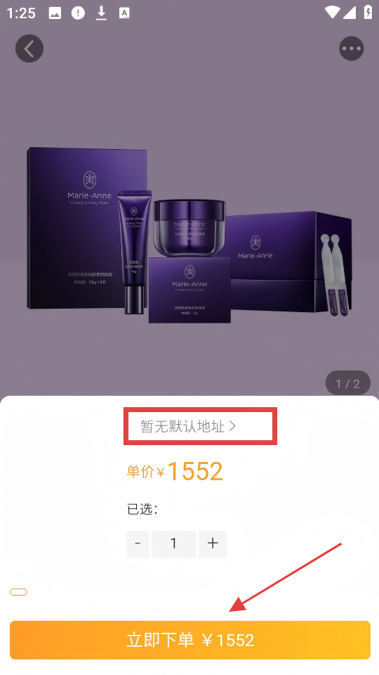 4、在商品下单页面,添加地址后,点击【立即下单¥1552】按钮。