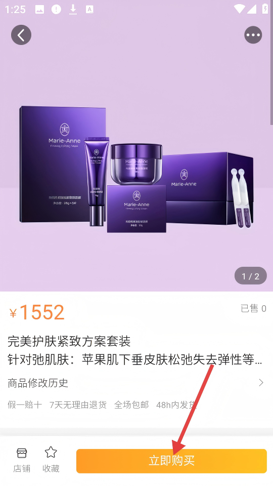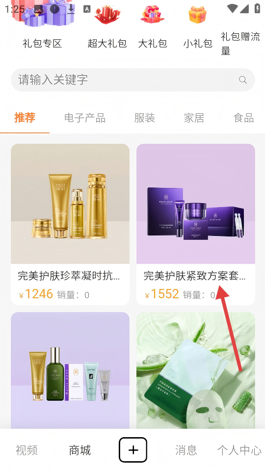 2、在商城页面,点击【完美护肤紧致方案套…】商品,进入其详情页面。