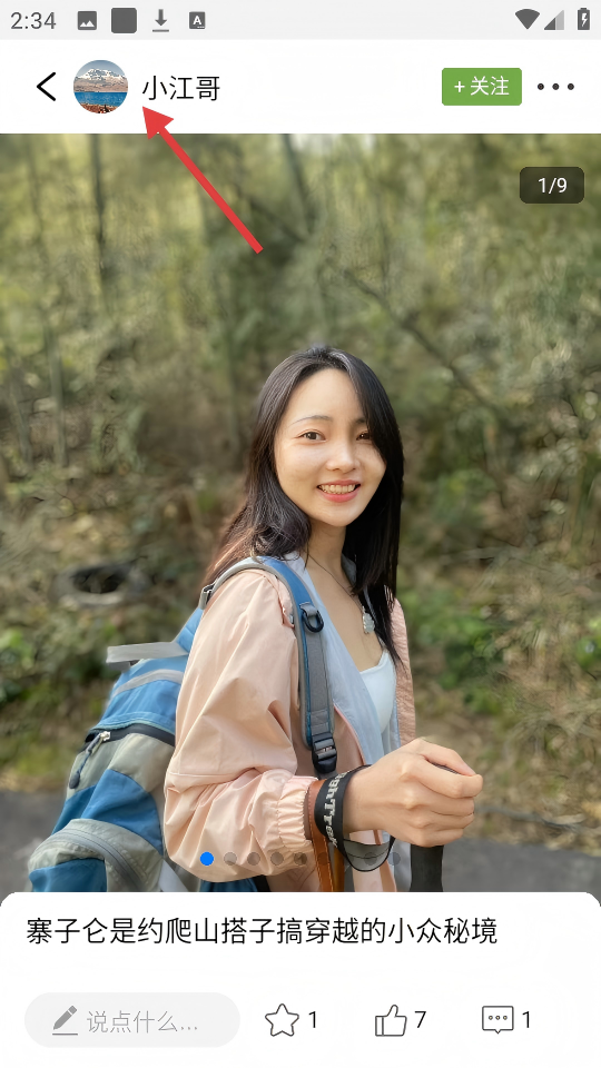 2、在内容详情页,点击【小江哥】的头像,进入其个人主页。