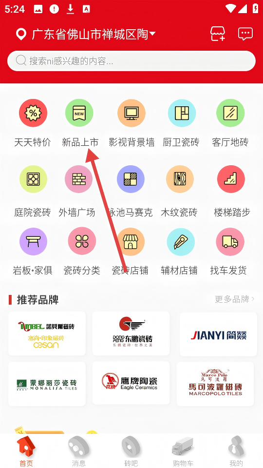 1、点击首页的【新品上市】图标,可查看最新瓷砖产品。