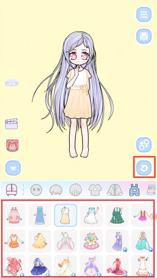 3、切换到连衣裙分类,挑选心仪的连衣裙为角色穿上,若对搭配不满意,可点击右侧重置按钮重新进行装扮。