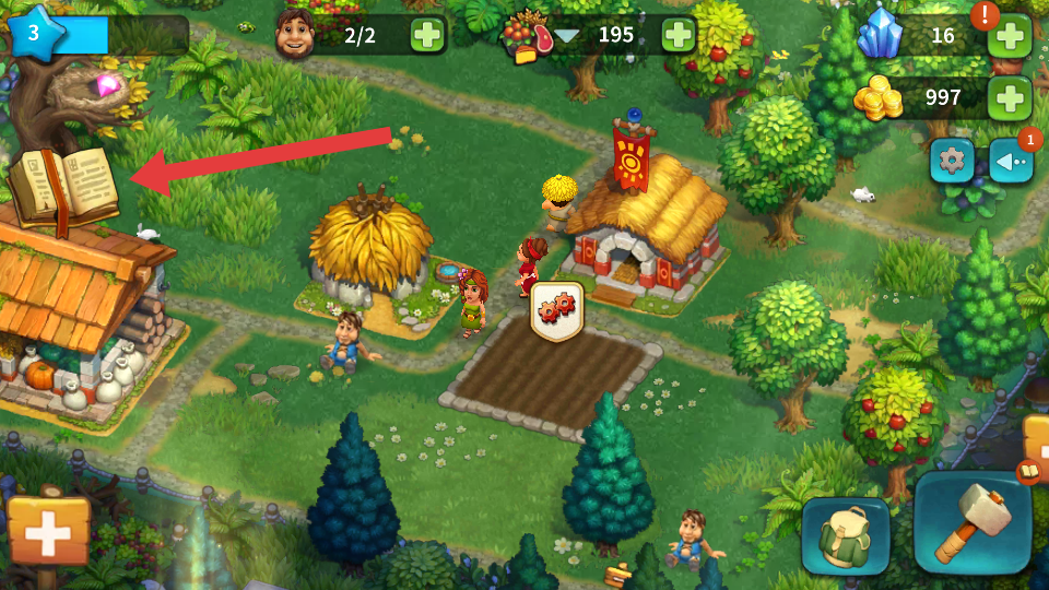 1、进入游戏画面,点击箭头所指的【书本】图标,查看当前可接取的任务。