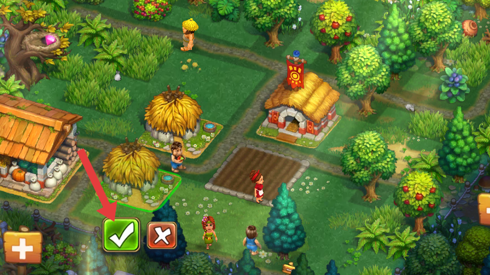 4、在选定建造位置后,点击绿色对勾按钮,消耗对应资源完成小屋建造,推进任务进度。