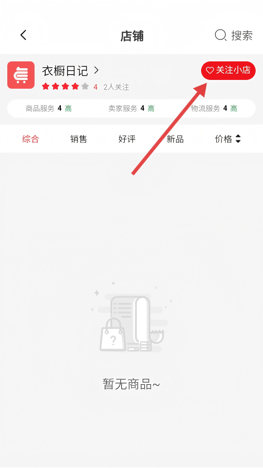 4、在店铺页面,点击【关注小店】,即可关注该店铺。