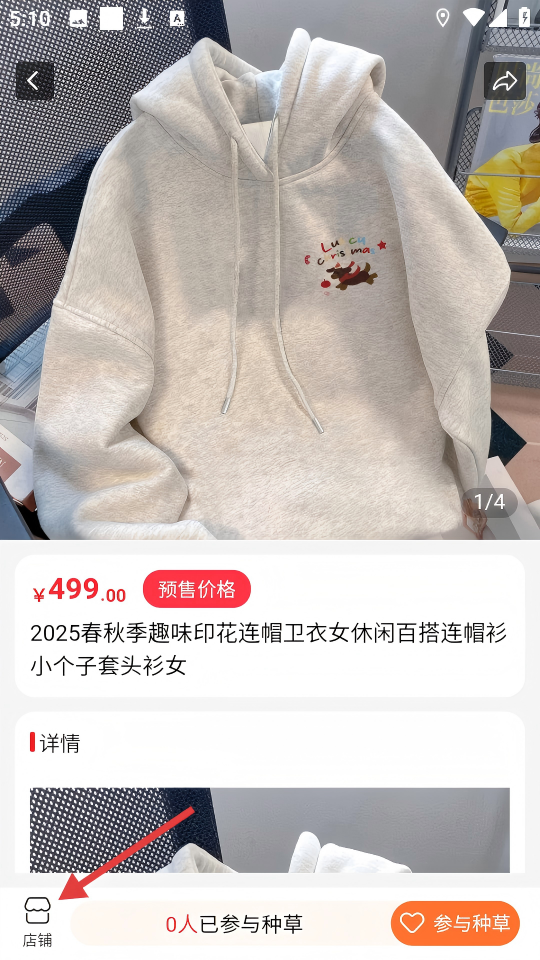 2、在种草页面,点击【2025春秋季趣味印花连帽卫衣女休闲百搭连帽衫...】商品,进入该商品详情页。