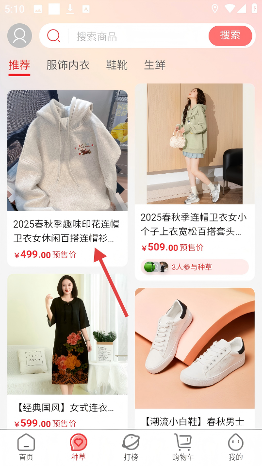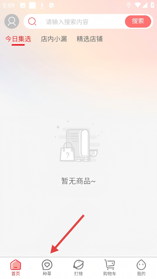 1、点击页面底部的【种草】,进入种草商品展示页面。