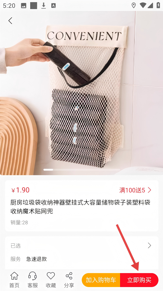 1、点击首页中的【厨房垃圾袋收纳神器壁挂式大容量储物袋子装塑...】商品,进入该商品详情页。