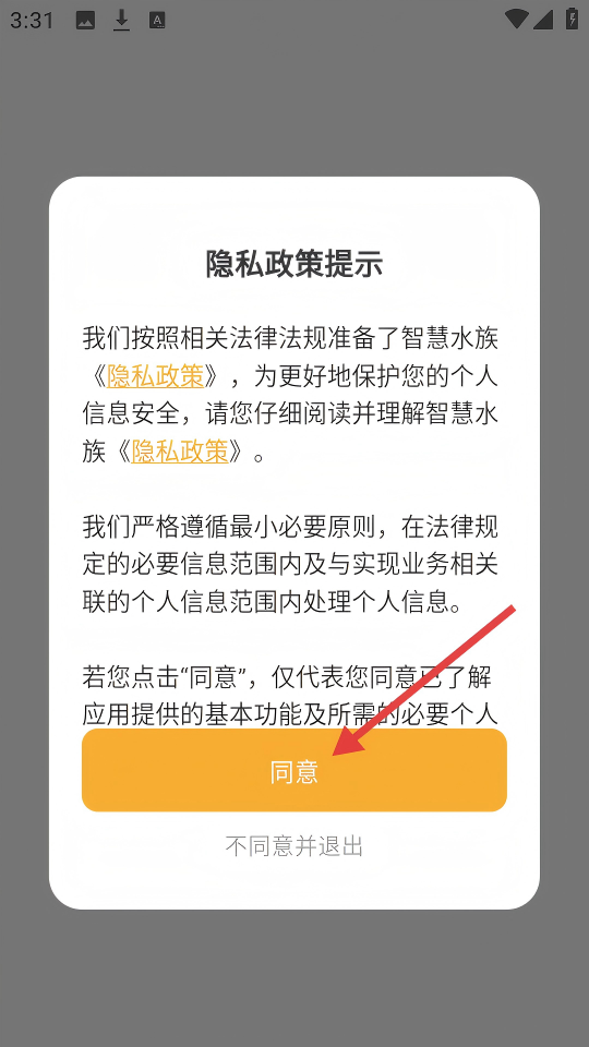 1、使用应用时,会弹出【隐私政策提示】,仔细阅读后点击【同意】按钮,即可继续使用应用。