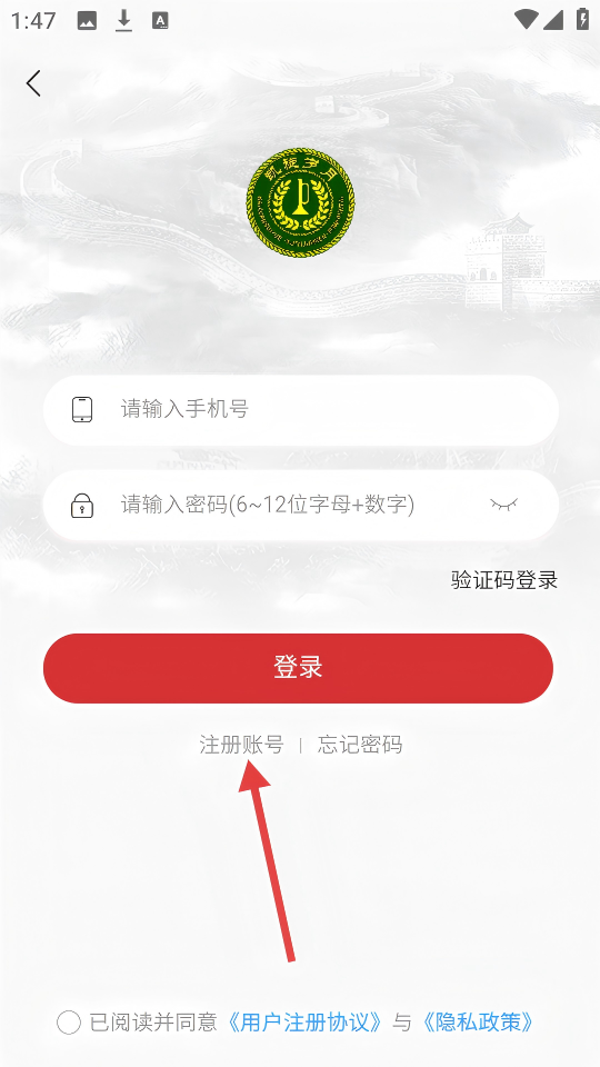 3、在登录界面,点击【注册账号】可进入注册页面。