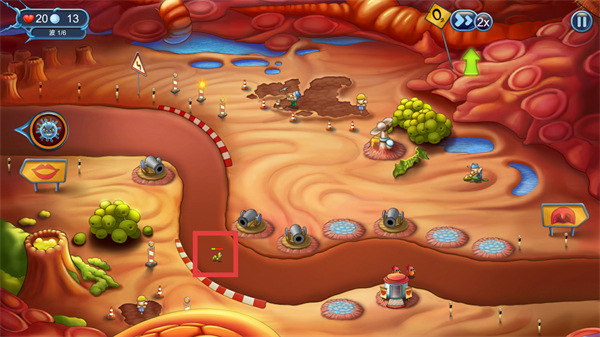 2、防御塔种类设计贴近生物学,血球塔分速攻和重击双路线,维生素工厂能强化周边单位,每个建筑都能找到对应的真实细胞原型。