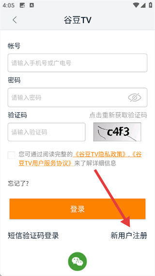 3、在登录页面,选择“新用户注册”选项。