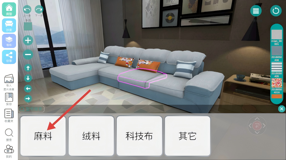 1、双轨素材供给体系:内置100款不同类型沙发预制模型,支持用户自主导入布料素材,兼顾标准化选择与个性化创作需求。