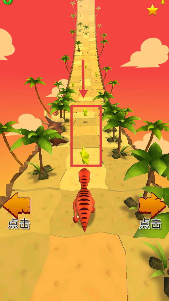 2、操控恐龙沿道路前进,收集道路上的黄色星星。